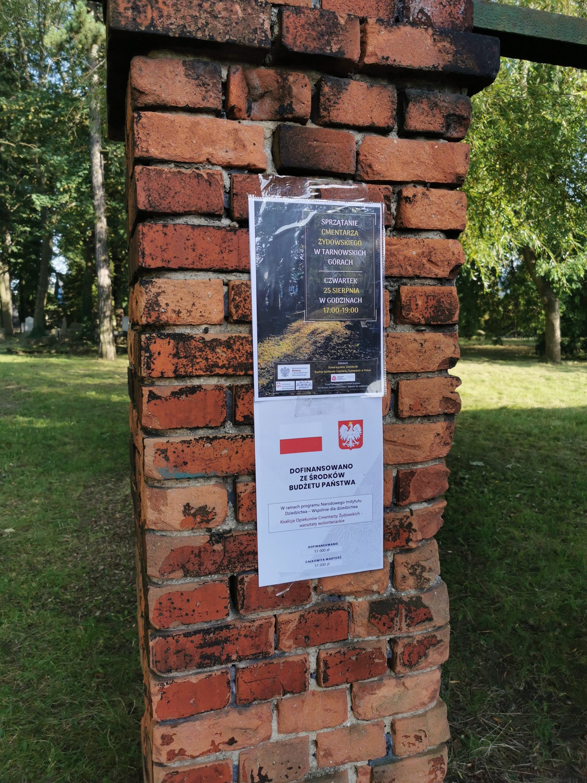 Under the auspices of the Coalition of Guardians of Jewish Cemeteries in Poland and in cooperation with the resilient Gliwice 66 Association, its member, we organized the cleaning of the Jewish cemetery in Tarnowskie Góry. The funds we obtained from the program of the National Heritage Institute – Together for Heritage, within the framework of the task Coalition of Guardians of Jewish Cemeteries – Volunteer Workshops, were used, among other things, to hire a professional company for mowing the grass and removing green waste, and to equip volunteers with all the necessary accessories for safe and effective cleaning of the historic cemetery.